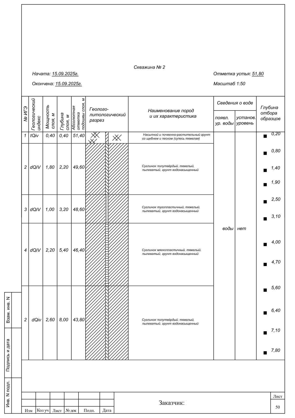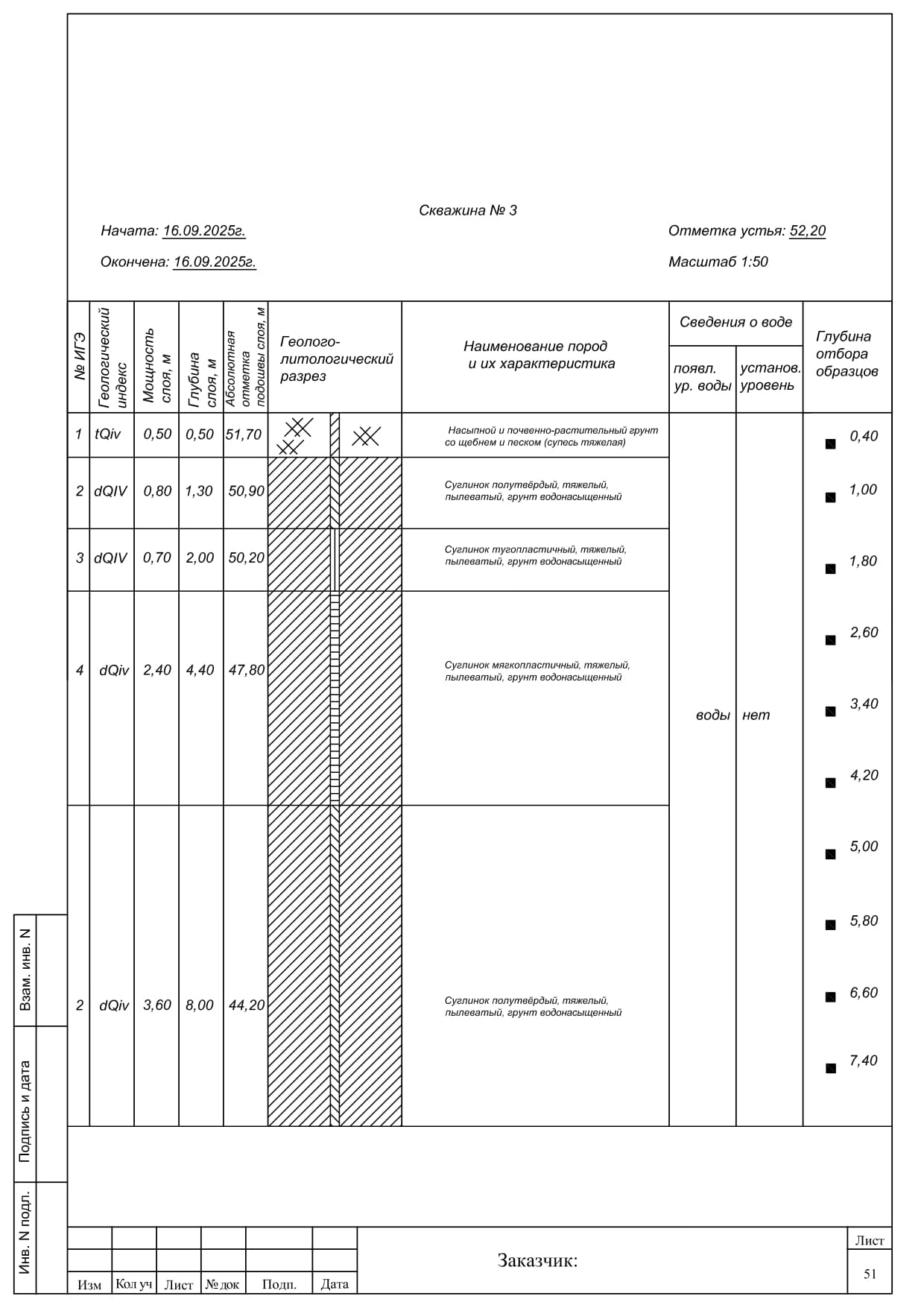- Описание геологического разреза и выделение инженерно-геологических элементов.