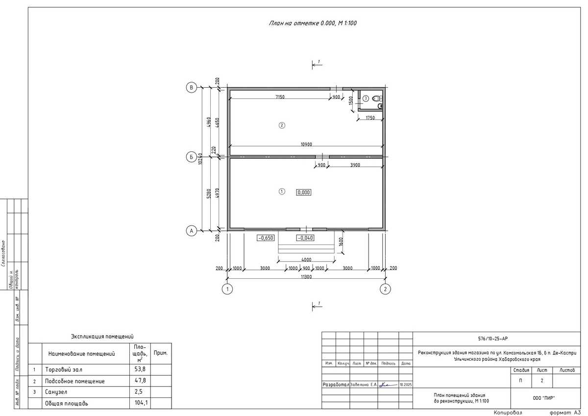 Исходные данные: технический паспорт на здание магазина, градостроительный план земельного участка площадью 600 м², территориальная зона Ж-1.
