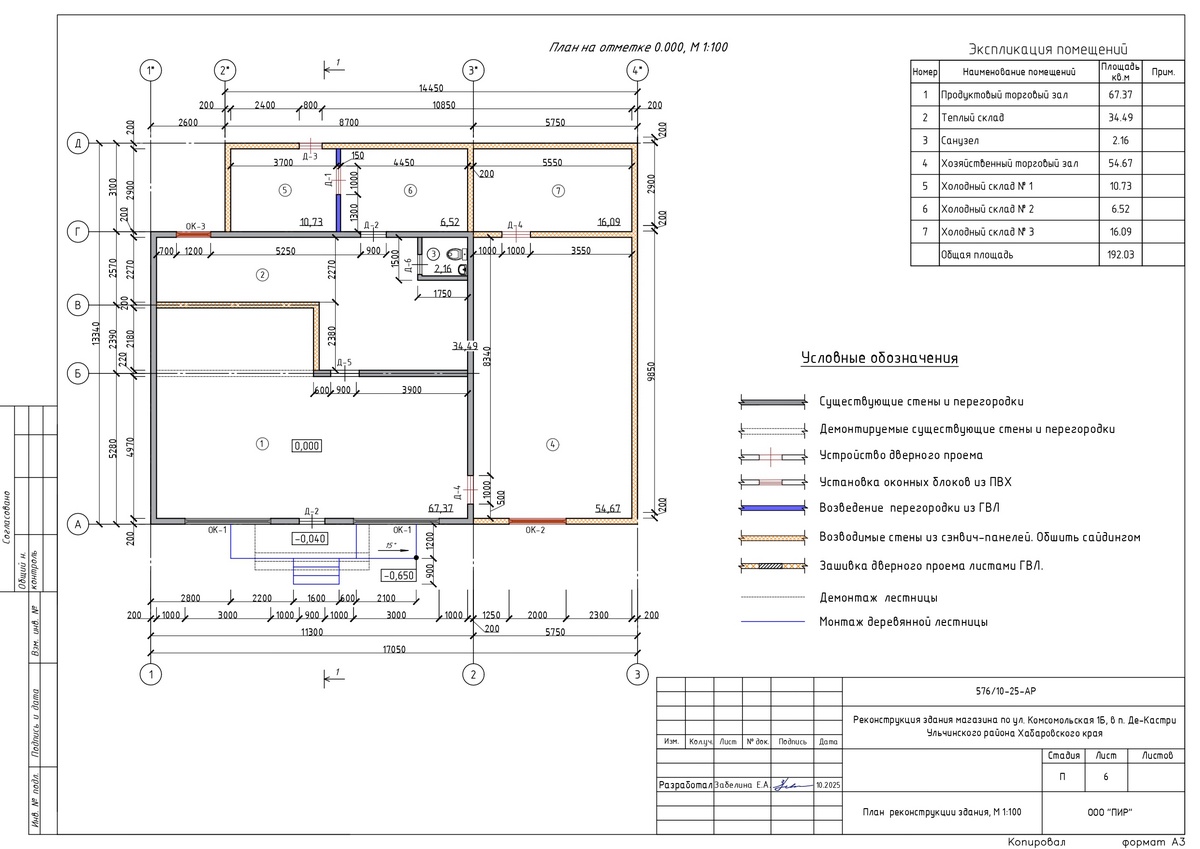 Демонтированы существующие ненесущие перегородки, что позволило создать новое зонирование с учётом современных требований к торговым предприятиям. Выход организован через существующий вход здания.