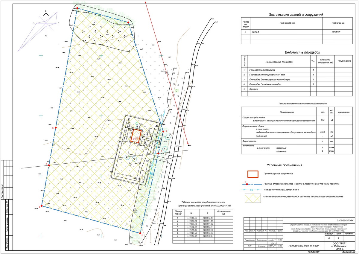 - Лист 3 — Разбивочный план, М 1:500.